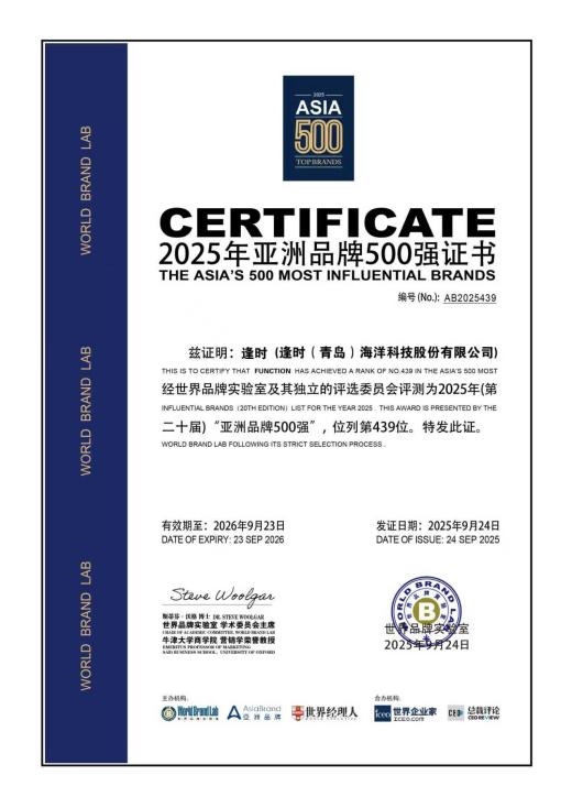9月24日,世界品牌实验室发布了2025年“亚洲品牌500强”年度报告。逢时(青岛)海洋科技股份有限公司(以下简称逢时科技)与国药集团、同仁堂、药明康德作为中国大陆四大医药行业品牌共同上榜,位列第439位,较去年提升17个位次,是海洋药物和生物制品领域唯一上榜品牌。